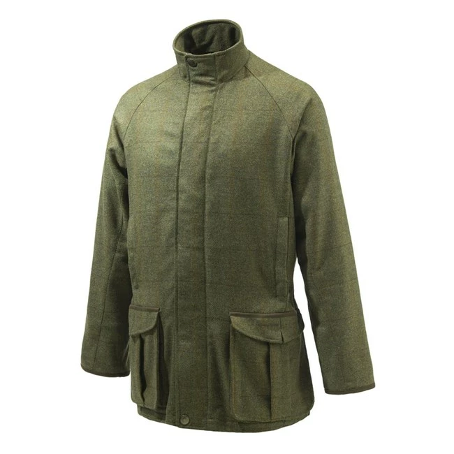 Men’s waterproof coat for driven hunting in wool and cashmere with inner CoolMax® lining, BWB EVO – Beretta Waterproof Breathable membrane and details in eco suede.